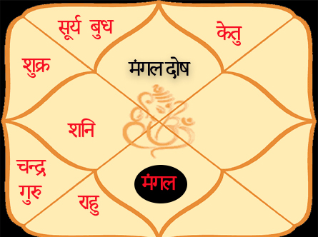 When Mars is present in the first, fourth, seventh, eighth, or twelfth house of a horoscope, it is called Mangal Dosha. Depending on the country, time, and person, many people associate Mangal Dosha with the Moon, while others associate it with Venus. The main place on Earth for the elimination of Mangal Dosha is the Shri Angareshwar Temple in Ujjain, where Lord Shiva's sweat fell, and from this very place, the worship of Mangal Dosha originated.